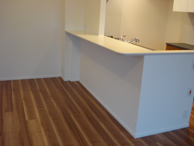 お子様も結婚・独立され、ご夫婦お二人での生活になったO様。 たくさんの食器が入ったカップボードがキッチンとリビングダイニングを隔て、冷蔵庫や調理家電がダイニングき配置されていました。 今回のリフォームでは、キッチンのコンパクト化と、食器類の整理をすることでスッキリしたLDKを目指しました。キッチンの間口は小さくなりましたが、お二人暮らしでは十分。リビング側へ向けて対面式にしました。その奥へ冷蔵庫・調理家電・カップボードを配置しました。 カップボードは、予算削減のため既存の物に手を加え、使いやすさも考慮して改良再利用しました。 |
